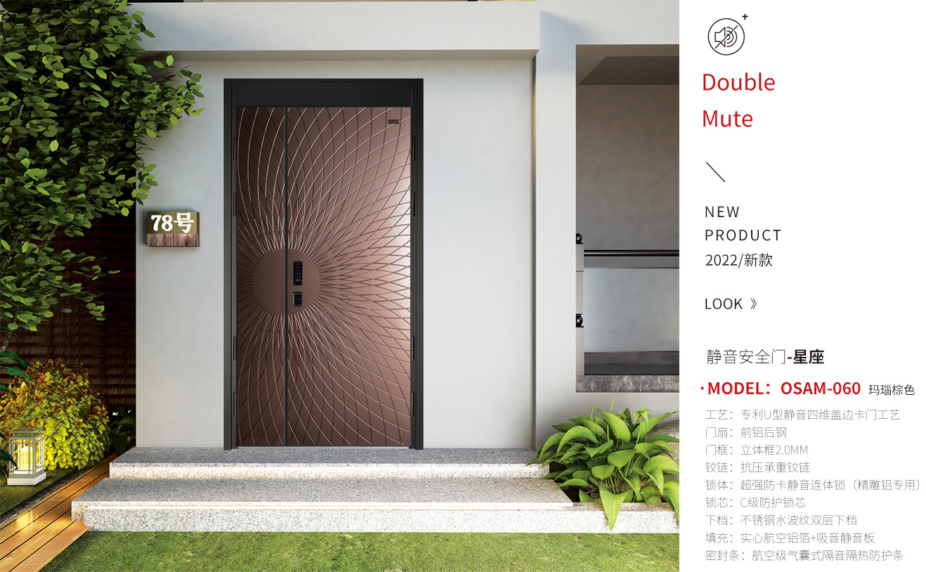 引領技術-歐奢曼全新打造靜音和安全雙系統(tǒng)安全門,為居者打造全新的生活方式。