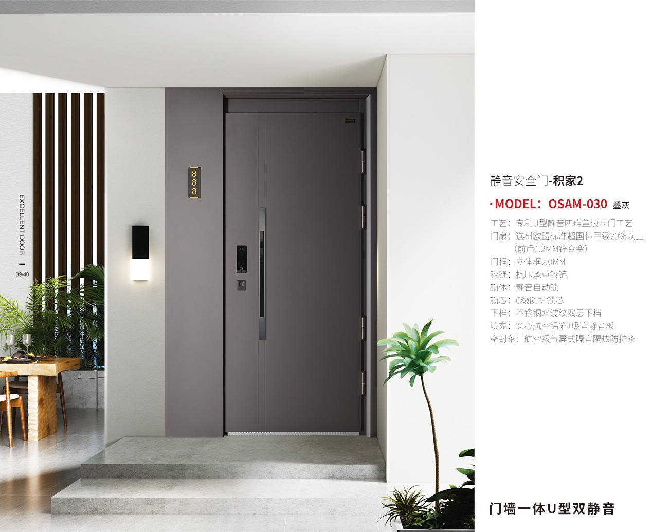 引領技術-歐奢曼全新打造靜音和安全雙系統(tǒng)安全門,為居者打造全新的生活方式。