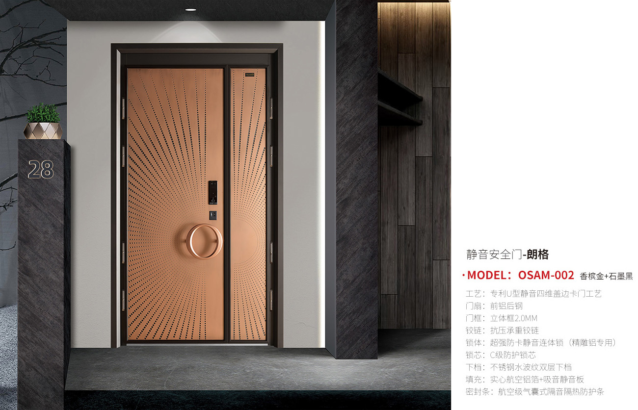 引領(lǐng)技術(shù)-歐奢曼全新打造靜音和安全雙系統(tǒng)安全門,為居者打造全新的生活方式。